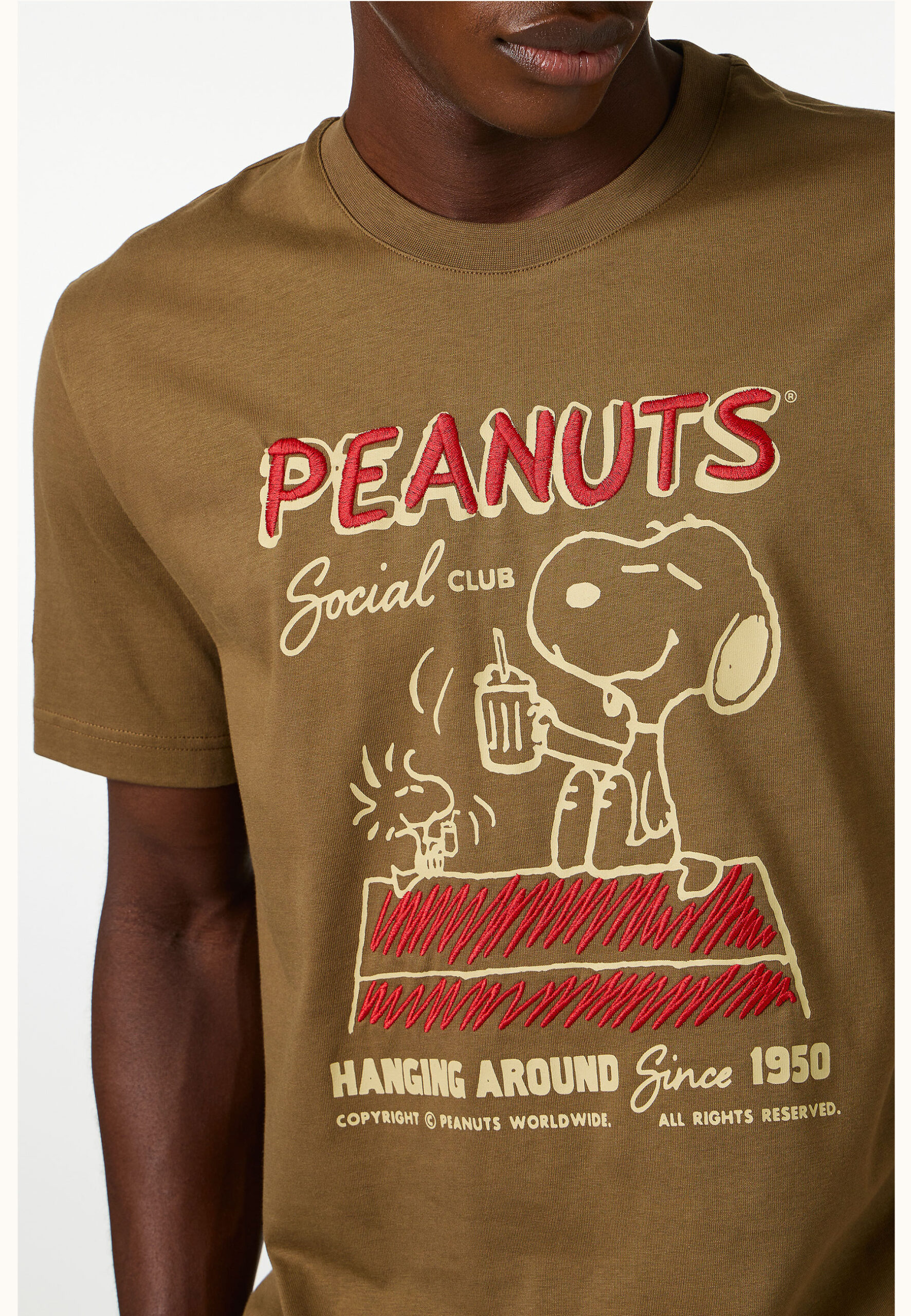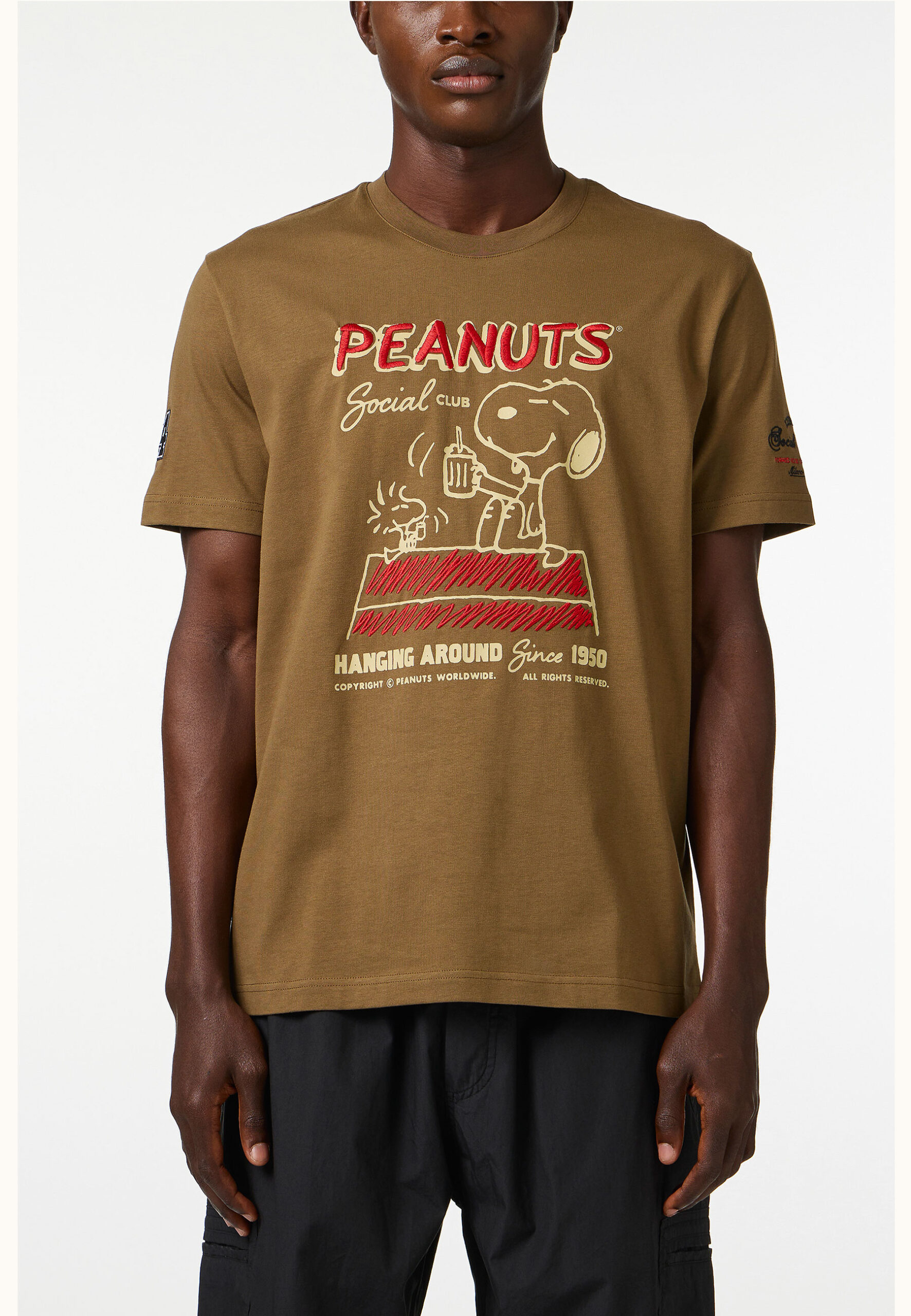 T-shirt kaki in jersey di cotone dalla vestibilità regular che assicura comfort e libertà di movimento. Sul davanti, la stampa cartoon con disegno Peanuts introduce un accento iconico e riconoscibile, dal carattere pop e contemporaneo. Un capo essenziale e distintivo, pensato per interpretare il casual quotidiano con personalità.